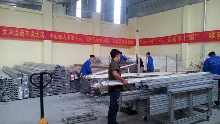 今日(2016.4.29)是5.1節(jié)放假的前一天,我司將有大批量產(chǎn)品出貨(精益管,鋁型材及配件);為了客戶您假后勝利開展工作,我司全員不顧中午休息時(shí)間,分工協(xié)作,有的切精益管,有的切鋁型材,有的攻牙,有的打包......雖說春色迷人,我們的工作風(fēng)采也絕不遜色。(組圖)