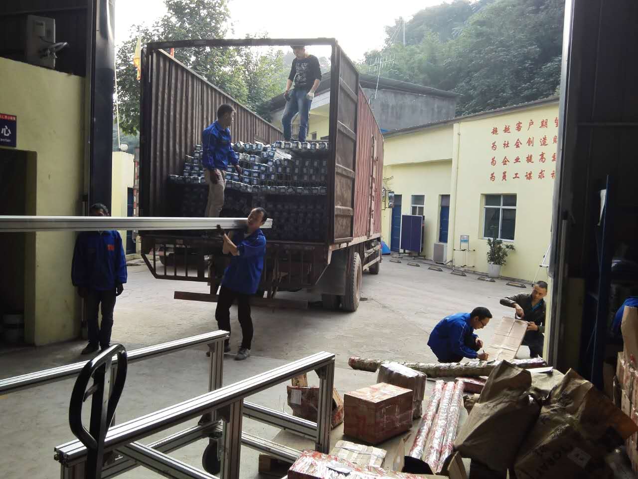 獨有的匯興智造匠心精神,匯利興人團結(jié)一致進行下貨與打包出貨