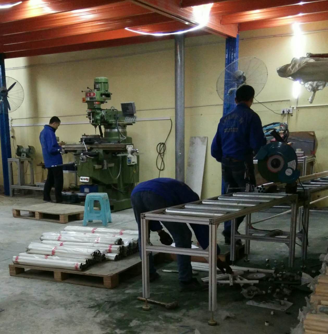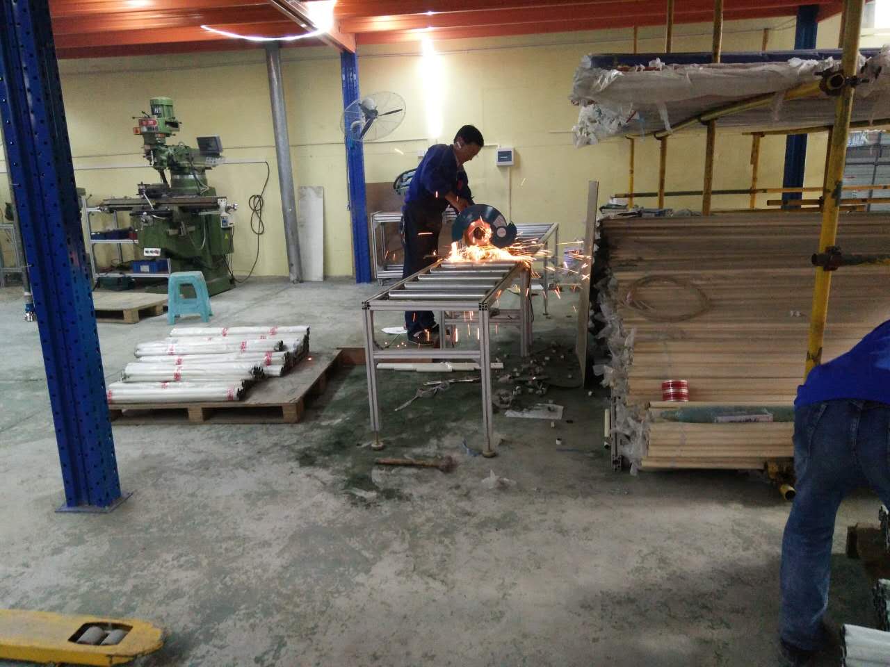 匯利興人認真的對精益管或鋁型材進行鉆銑、切割