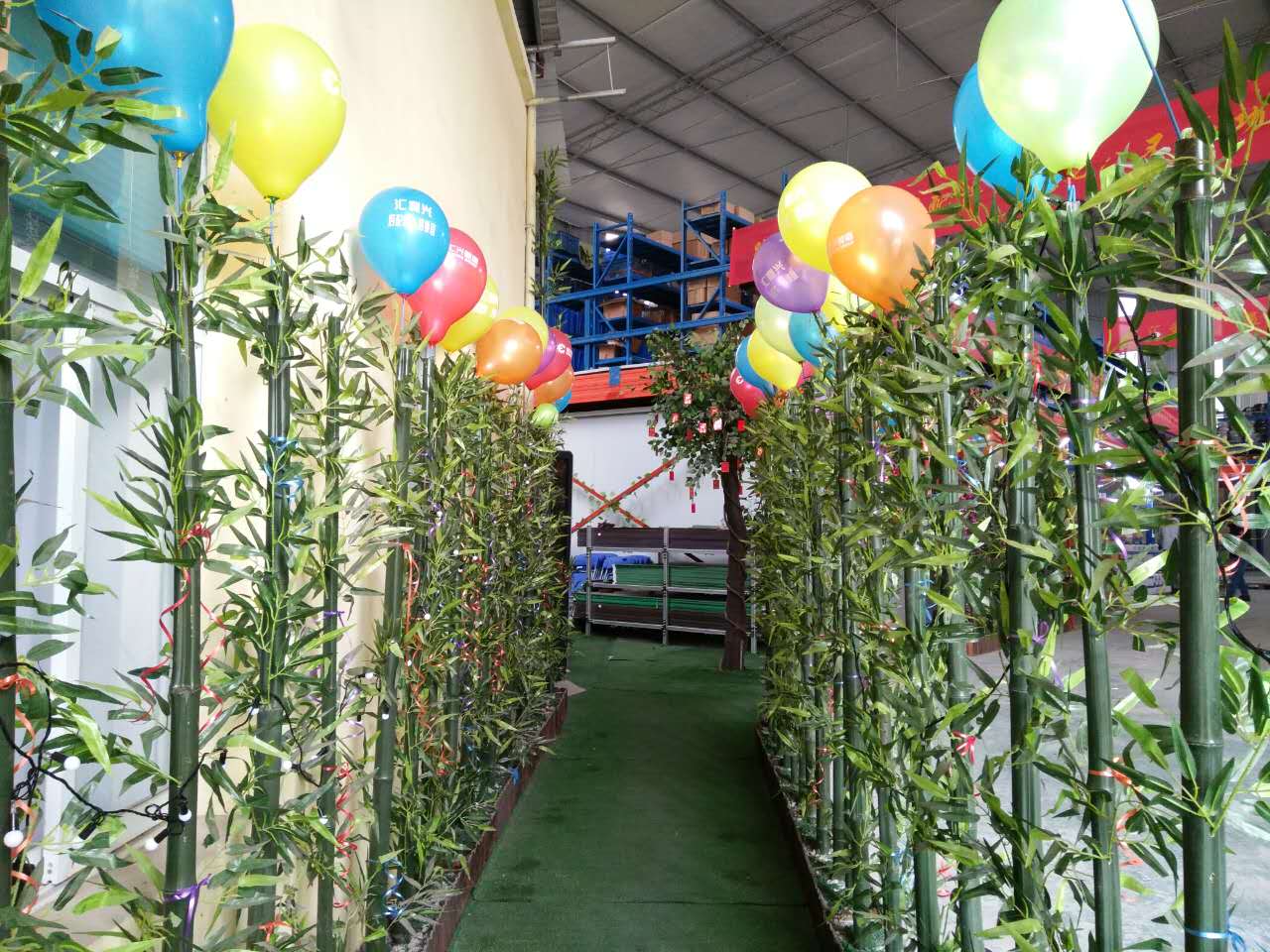 張燈結(jié)彩,彩旗飄飄-好山好水好地方好彩頭 陽光普灑在匯利興墻面上紅彤彤的燈籠兒掛立兩旁彰顯著匯利興紅火的前方,進(jìn)而也突顯著匯利興企業(yè)文化與團(tuán)隊(duì)精神同時(shí)也在溫暖著匯利興人的心 精神抖擻的匯利興人在認(rèn)真的工作 綠草青竹有著無顏六色的彩帶與氣球兒的點(diǎn)綴成為了一顆璀璨耀眼的明珠,一個(gè)“世外竹源”。