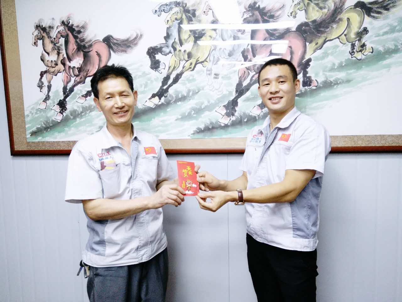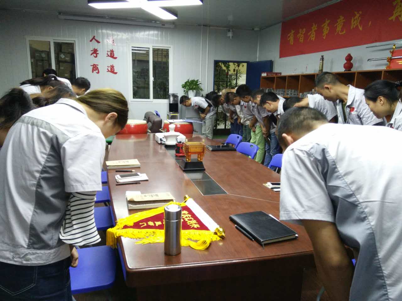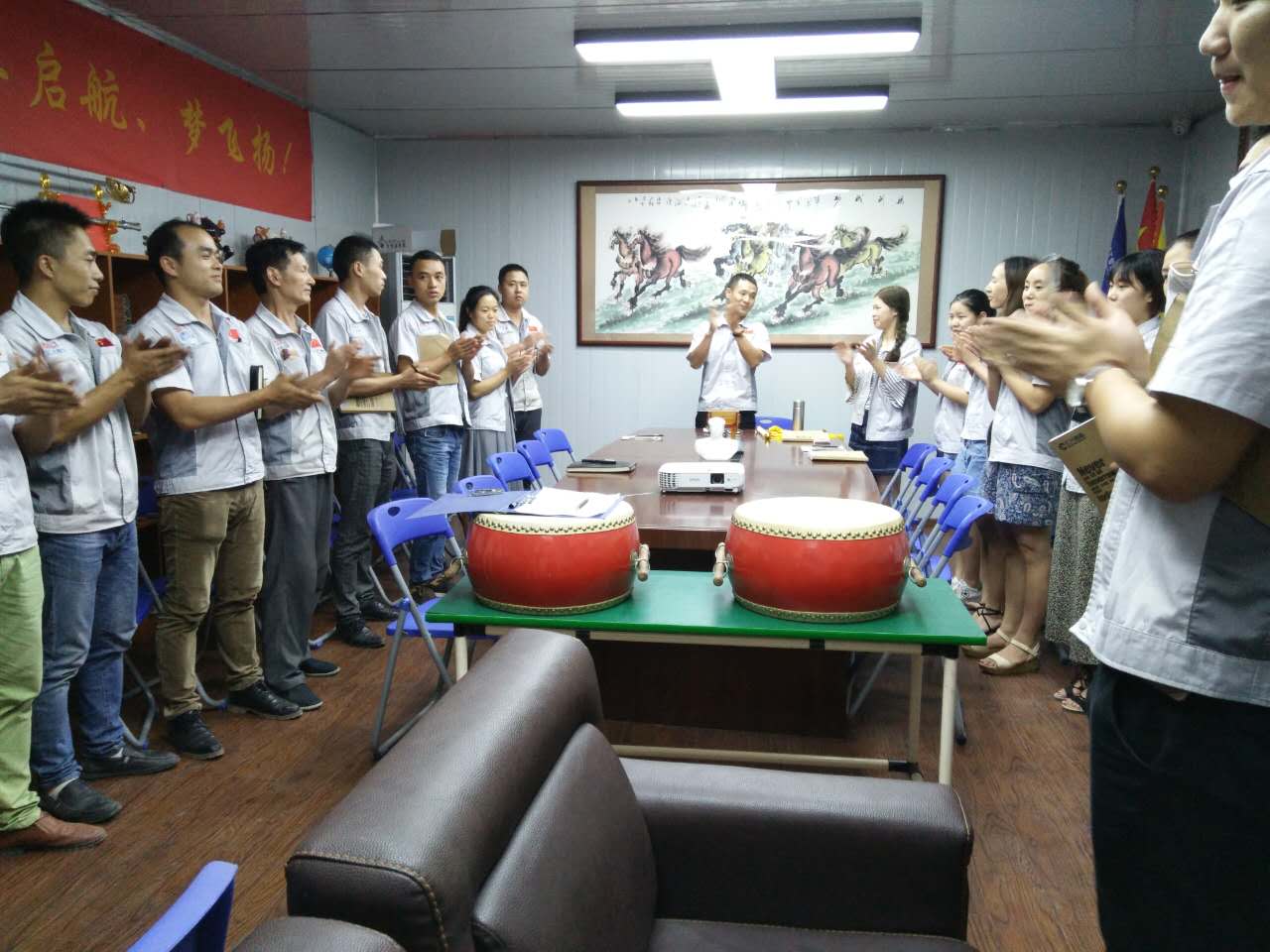 匯利興家人自我價(jià)值枰稱估量圖示 會議召開前,全體人員對企業(yè)三道“人道、孝道、商道”行三鞠躬,隨后以“士氣擊鼓”儀式正式進(jìn)入會議主題。 全體員工向企業(yè)三道行三鞠躬 會議士氣擊鼓,士氣比武器更重要 會上,首先胡總經(jīng)理對我司上半年度業(yè)績增長度做了相應(yīng)的講解;其次對我司發(fā)展現(xiàn)狀做了相應(yīng)的分析,并表示公司相關(guān)制度會隨著規(guī)模壯大不斷加之嚴(yán)格化;隨即提到公司人才倍增計(jì)劃、匯利興品牌影響力度及公司員工福利事宜,并表示在前進(jìn)及壯大的基礎(chǔ)上必經(jīng)“改革”之路,推陳出新、不斷創(chuàng)新。隨后,各部門主管依次對上季度做簡短述職,檢討不足分享經(jīng)驗(yàn);最后會議以每月最佳部門獎及月度之星的頒選而落下帷幕。 每月最佳部門獎與月度之星,是一份激勵與鼓舞,是一份責(zé)任與擔(dān)當(dāng),是一份愛與認(rèn)可;正是這份公司的激勵、自我的責(zé)任、同事的愛,使匯利興家人更加團(tuán)結(jié)與奉獻(xiàn),默默付出與努力,讓這個(gè)家越來越壯大。此次最佳部門獎為“客服部”,月度之星“周長發(fā)”家人,在此感謝他們的付出與努力,讓我們用最堅(jiān)韌的力量一起奔向心中的藍(lán)天。 胡總經(jīng)理(圖左)與月度部門“客服部”代表人蒲經(jīng)理(圖右)合影 胡總經(jīng)理(圖右)與月度之星周長發(fā)(圖左)家人合影