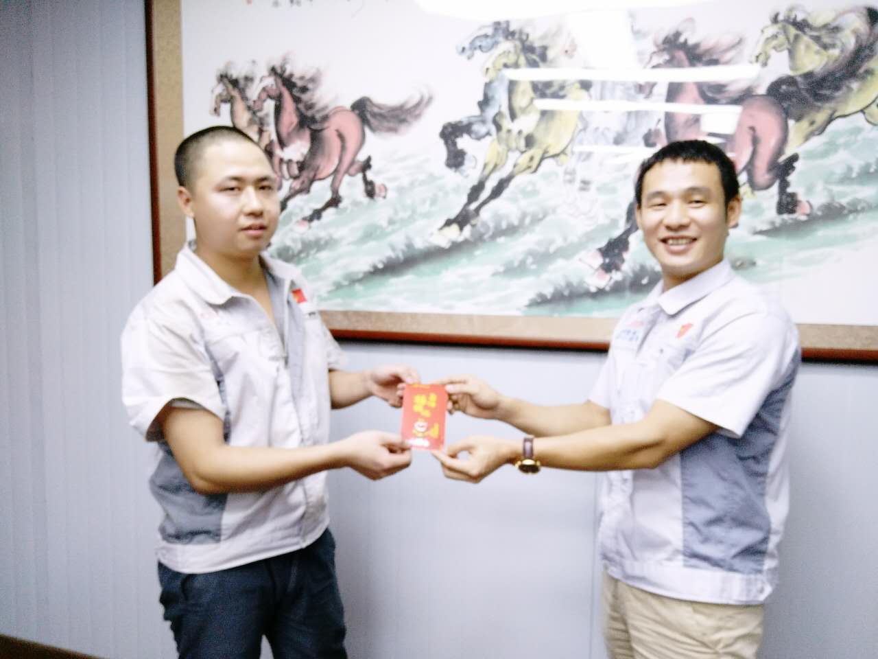 月度之星徐財華與胡總經(jīng)理同框合影