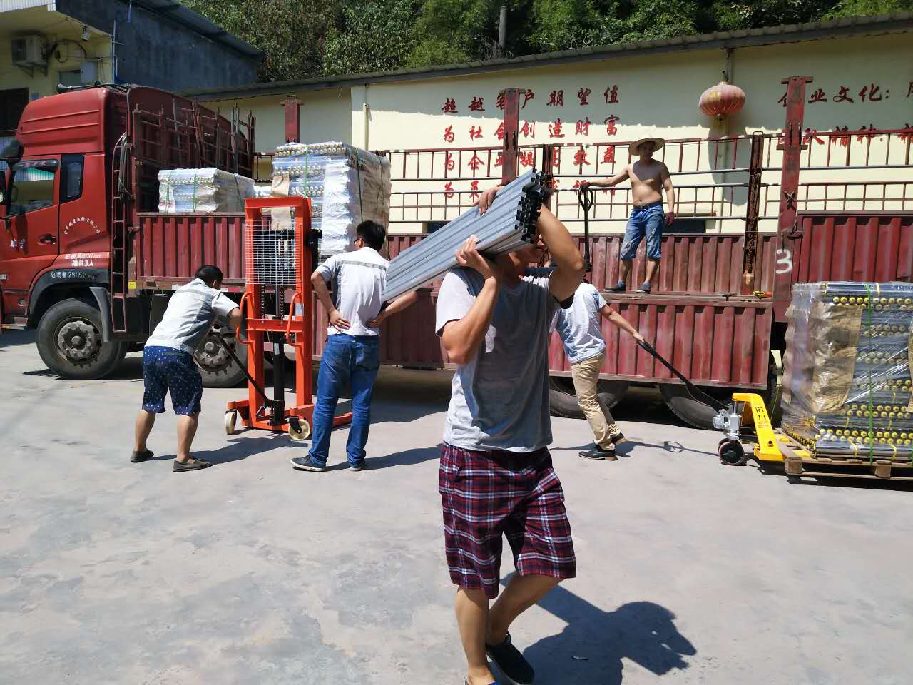 蔚藍的天空,纖云不染,澄碧的小河,緩緩流淌,而廠內(nèi)的匯利興戰(zhàn)士們斗志昂揚。一星期的不懈奮斗終于到了收尾的時候,但匯利興戰(zhàn)士們毫不懈怠,看他們小心翼翼的推著車,旁邊還要小心翼翼的扶著,保護著我們的心血之作。老驥伏櫪,志在千里,因為有了一份夢想,在這里揮汗如雨;因為有了一份信任,在這里同心協(xié)力;因為有了一份責任,在這里竭盡全力;因為有了一份承諾,在這里盡職盡責。匯利興的戰(zhàn)士們,無論何時何地都是斗志昂揚、激情不減,看車上的大哥,在烈日灼灼下光著膀子拼命的干,而車下的大哥拼盡全力一點點縮小著到成功的距離。用情做人,用心做事,這是匯利興永不改變的宗旨。