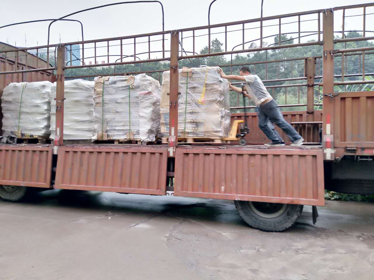 匯利興家人們始終如一、團(tuán)結(jié)一致、敬職敬業(yè),他們齊心協(xié)力地、小心翼翼用心呵護(hù)他們的心血之作,正如作家小心翼翼地呵護(hù)自己所寫的書一樣。因?yàn)檫@是他們奮斗后的結(jié)果、是他們努力后的收獲,雖早已汗流浹背但為了能使?jié)L筒整齊擺放在車上,他們拖著疲憊的身子使用自洪荒之力將滾筒擺放整齊,盡力做到最好。
