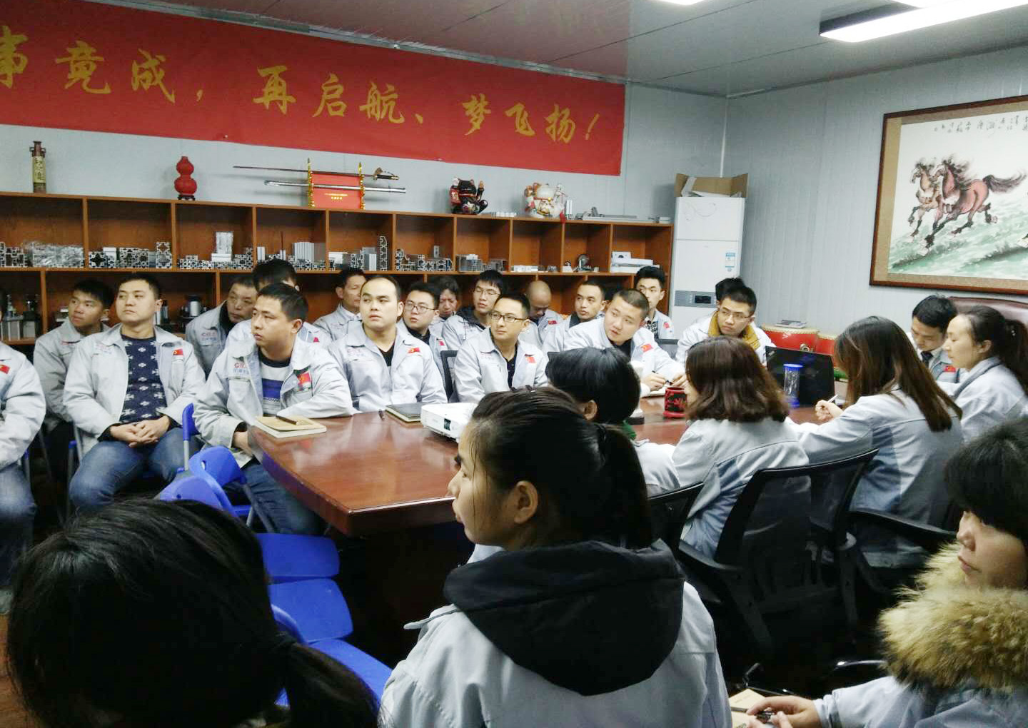 長(zhǎng)風(fēng)破浪會(huì)有時(shí),直掛云帆濟(jì)滄海。12月21日晚,我司全體人員在匯利興學(xué)校召開十一月份月度會(huì)議,會(huì)議進(jìn)場(chǎng)依次由自我價(jià)值估秤及簽到入場(chǎng),由張副總主持。