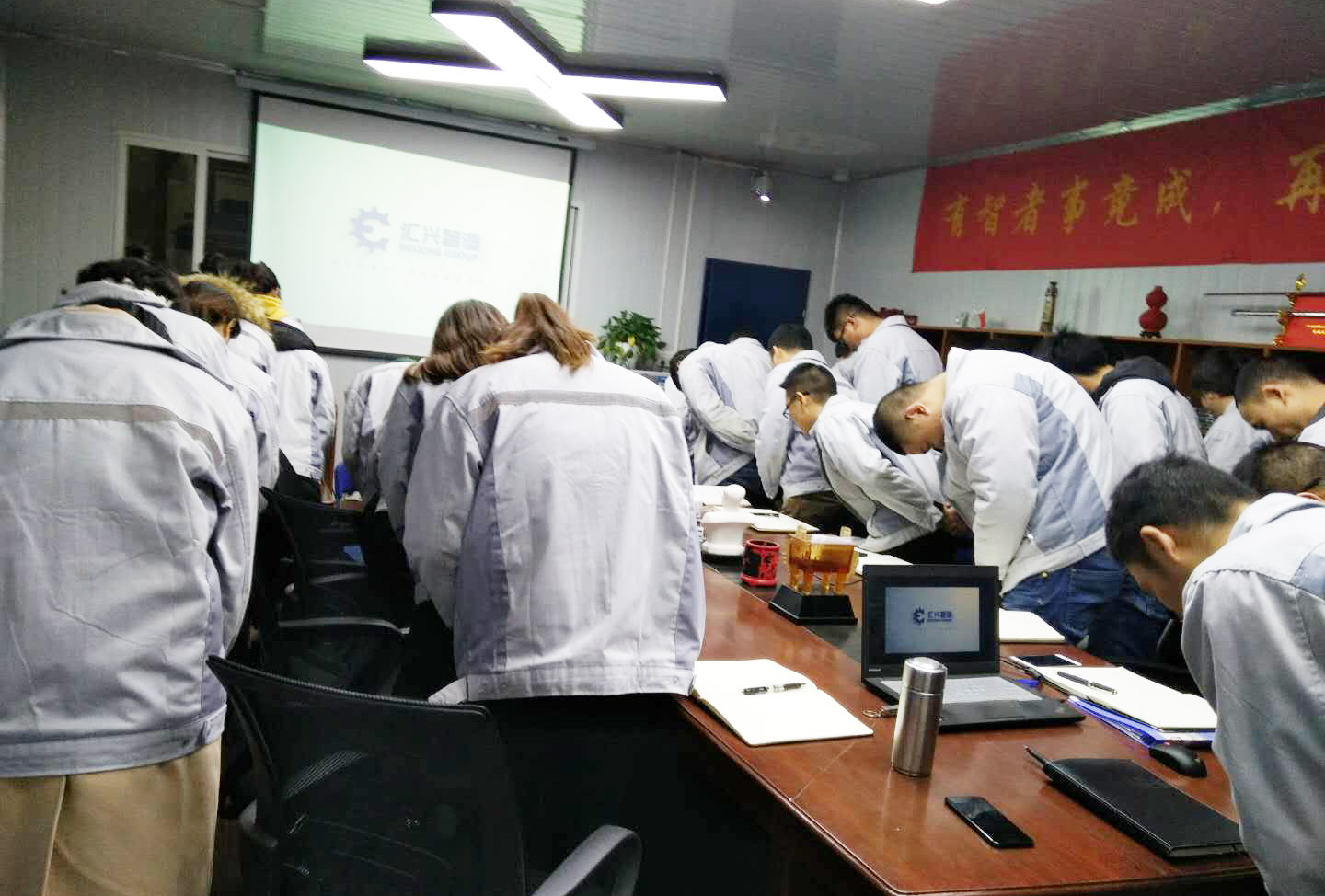 全體員工觀看公司相關(guān)視頻及聆聽匯利興之歌