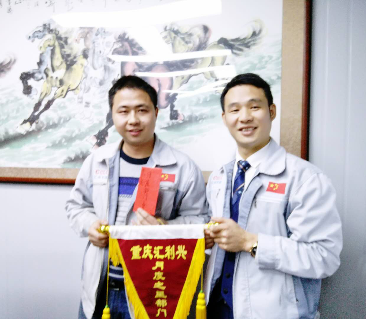 月度部門物控部主管徐財(cái)華(圖左)與胡總經(jīng)理(圖右)同框合影