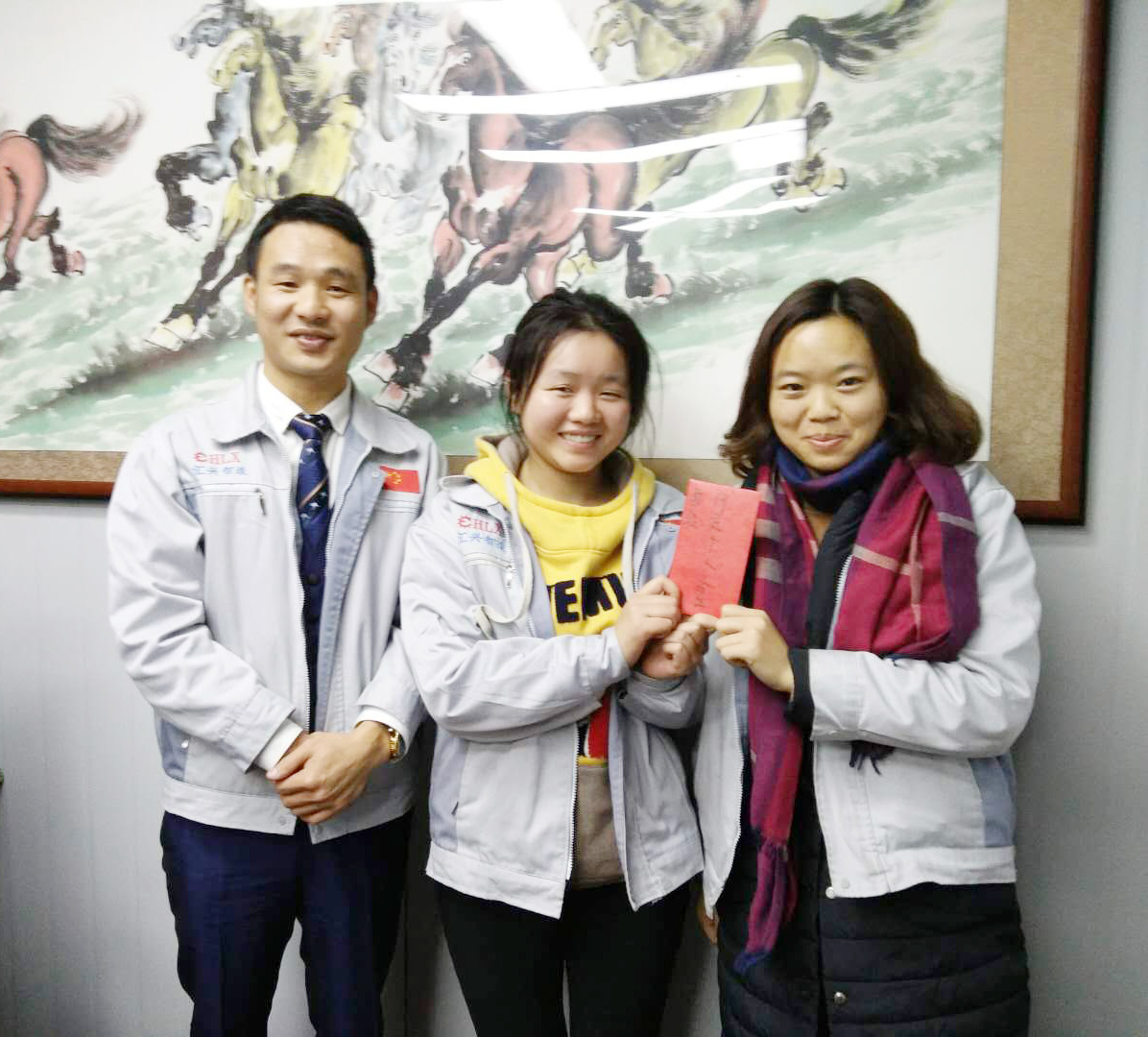 月度之星胡前敏、姜英(圖右)與胡總經(jīng)理(圖左)同框合影