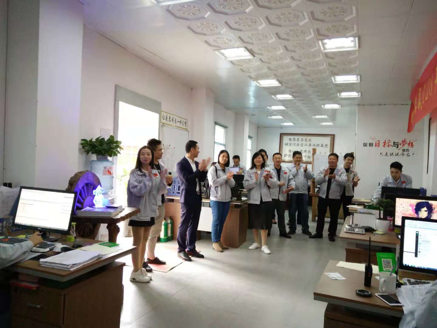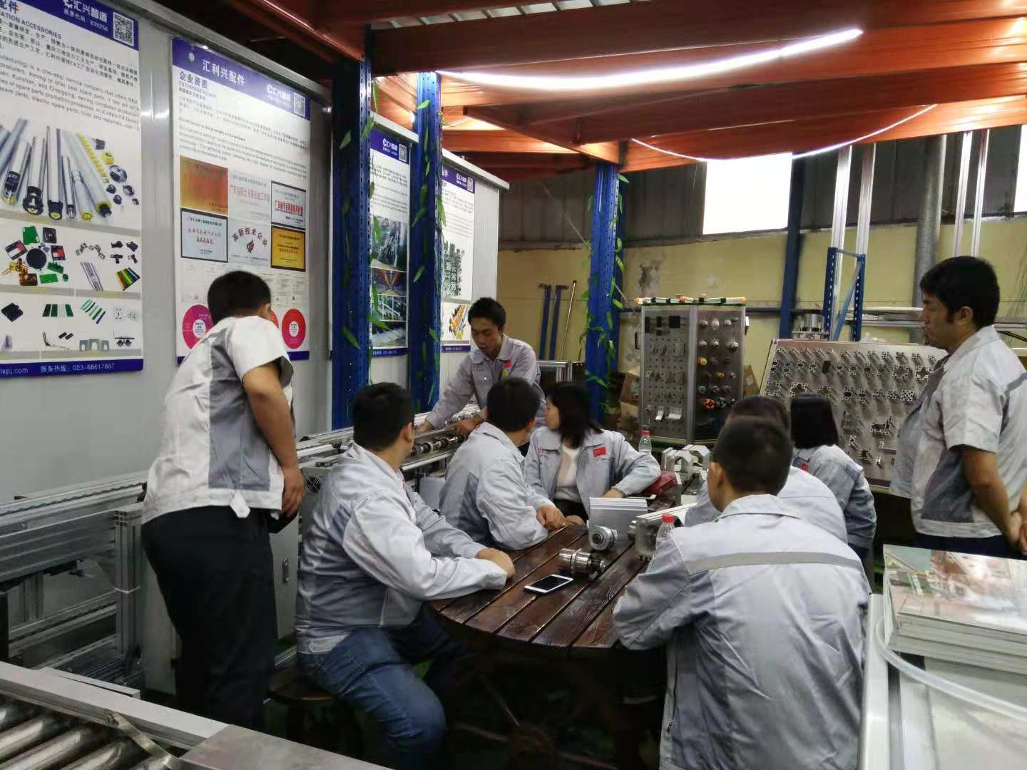 胡偉路總經(jīng)理帶領(lǐng)集團(tuán)代表一行認(rèn)識了匯利興(重慶)公司贏銷部的家人們,并陪同集團(tuán)代表一行參觀了匯利興(重慶)公司型材長材區(qū)及配件區(qū),介紹了重慶公司的新利器-型材切割機(jī),了解了重慶子公司一系列作業(yè)機(jī)械同時(shí)也參觀了9月份的參展線體,并現(xiàn)場相互交流了一些新創(chuàng)意、新想法,并表示匯利興(重慶)公司一系列文化及規(guī)模體系是值的稱贊得!同時(shí)胡偉路總經(jīng)理表示,重慶公司的文化完全是授予集團(tuán)公司的熏陶,在現(xiàn)有的文化上又創(chuàng)新了一些具備匯利興(重慶)公司的文化及作業(yè)體系,因此在廠容廠貌的結(jié)構(gòu)上有些許新穎。