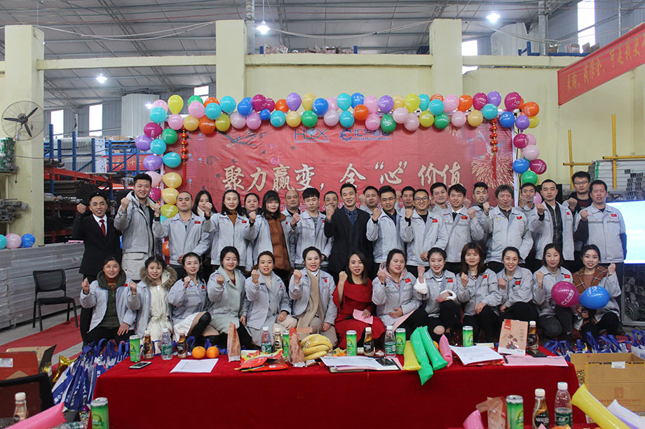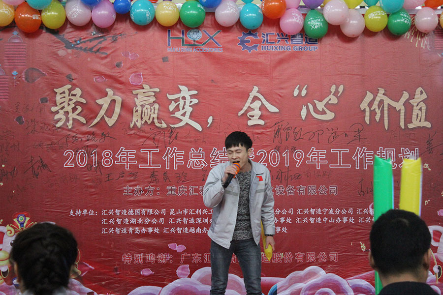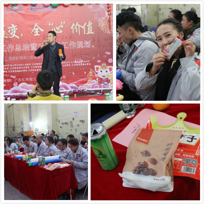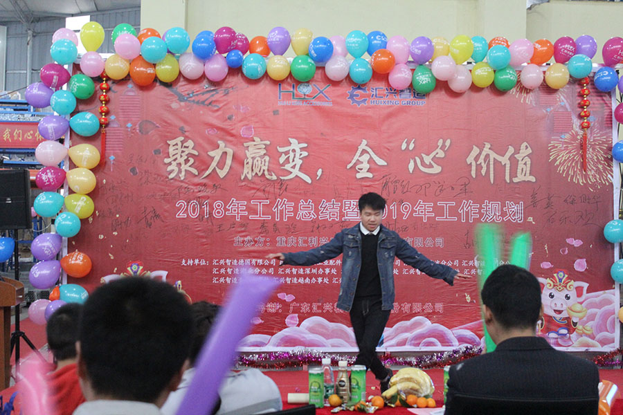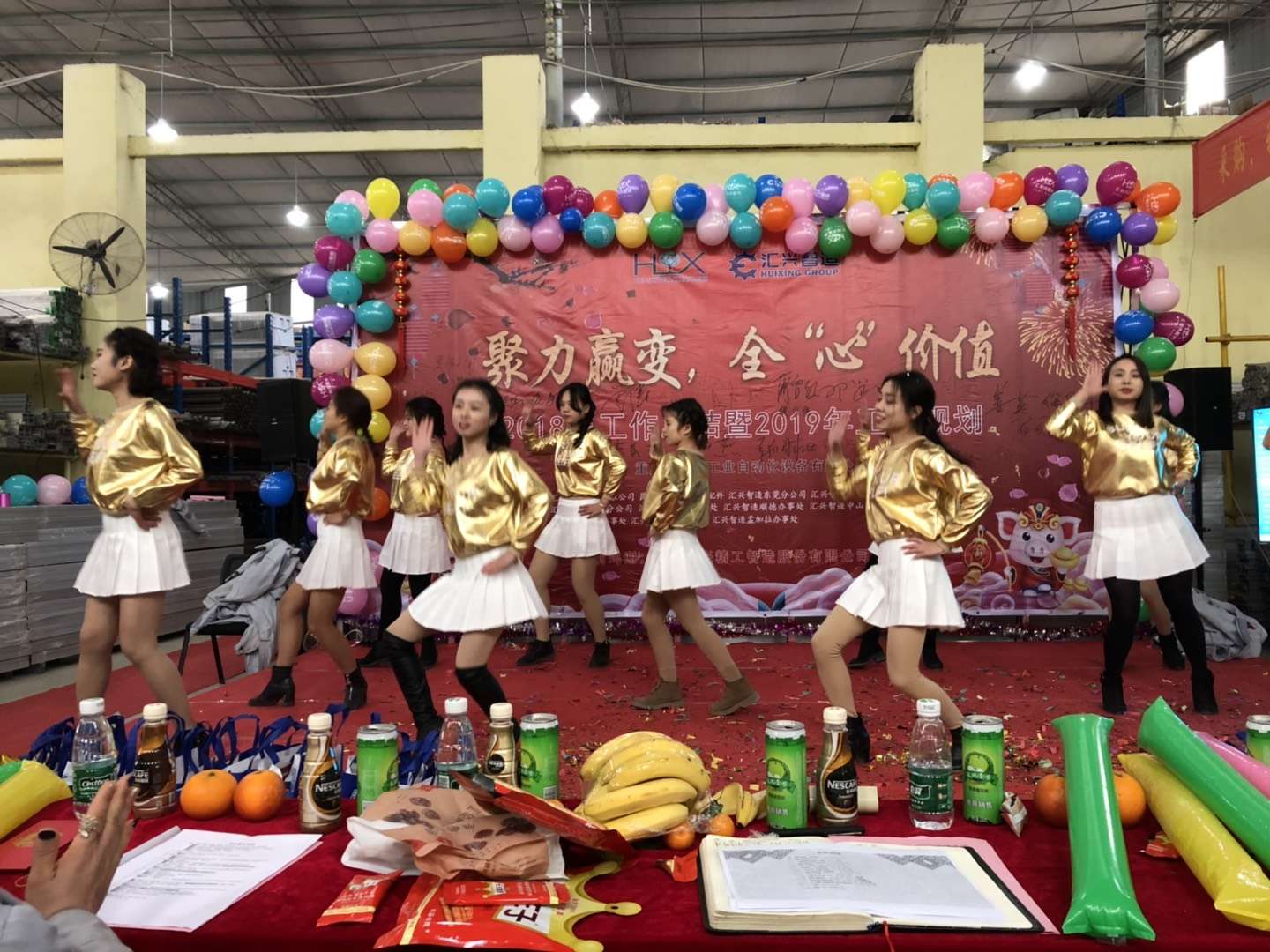 踏歌起舞辭舊歲,歡聲笑語迎新年。2019年1月19日下午,匯利興(重慶)公司在廠內(nèi)舉行了一場以“聚力贏變,全心價(jià)值”為主題的年終總結(jié)大會(huì)。會(huì)議主持人:石樂歡、熊學(xué)斌,參會(huì)人員:全體匯興家人。 56個(gè)民族56朵花,56個(gè)民族是一家,家人們以苗族竹竿舞進(jìn)場,濃厚的民族氣息里不泛透露出匯興人愛國也愛匯興家。