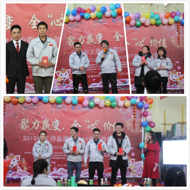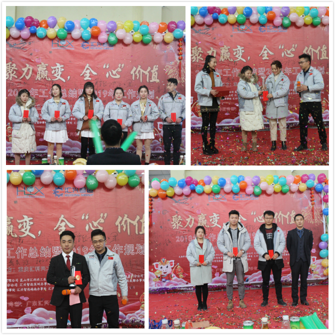 特等獎(jiǎng)、一等獎(jiǎng)、二等獎(jiǎng)、三等獎(jiǎng) 人生百味,五味最常在-品嘗人生五味象牙塔(酸、甜、苦、辣、咸),胡總攜全體家人們一起品嘗五味,一起嘗遍酸、甜、苦、辣、咸,回味2018年點(diǎn)點(diǎn)滴滴幸福的甜及幸福的苦,一起同甘苦共患難,也正是有了這五味,讓匯興生活多姿多彩。 緊接著進(jìn)入頒獎(jiǎng)環(huán)節(jié),對(duì)2018年中所取得成績及進(jìn)步的家人分別頒發(fā)了最佳付出獎(jiǎng)、最佳團(tuán)隊(duì)獎(jiǎng)、最佳進(jìn)步獎(jiǎng)、鼓勵(lì)獎(jiǎng),以資鼓勵(lì)。隨后胡總宣讀人事任命(任命熊學(xué)斌為銷售副總、周榮任命為物控主管、蒲曾紅任命為外省市場部負(fù)責(zé)人)。  最佳進(jìn)步、最佳團(tuán)隊(duì)、最佳付出、鼓勵(lì)獎(jiǎng) 隨著時(shí)間的推移,年會(huì)逐步接近尾聲,全體匯興家人合唱匯利興之歌《相信我們會(huì)創(chuàng)造奇跡》,會(huì)議就隨著家人們的歌聲而告一段落,但匯興人追夢(mèng)的腳步卻一直在前進(jìn)。夢(mèng)想是豐滿的,未來更值得期待,2019年匯興人將用行動(dòng)詮釋“聚力贏變,全心價(jià)值”,加油!