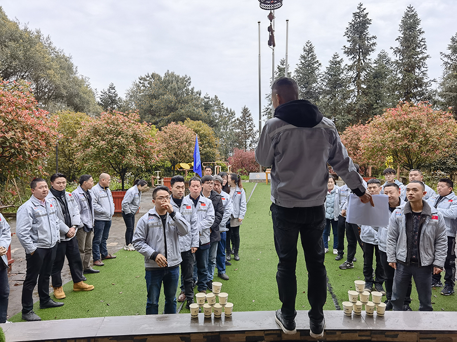 春色旖旎,風(fēng)光正好。帶著喜悅的心情,踏著春天的腳步,聞著春天的氣息,我們一起奔向了詩的遠方。本次活動共計40余人,9輛戰(zhàn)車,于8點20分出發(fā)前往巴南松木嘴紅楓林,長長的車隊行駛在道路上,宛如一條蜿蜒盤旋的巨龍,甚是可觀。 從廠區(qū)出發(fā),大約1小時30分我們就達到當(dāng)?shù)氐霓r(nóng)家樂,大家小憩一會兒后,正式展開了我們本次的團建小游戲,分別是氣球運杯子、斗雞、拔河、多人多足等。