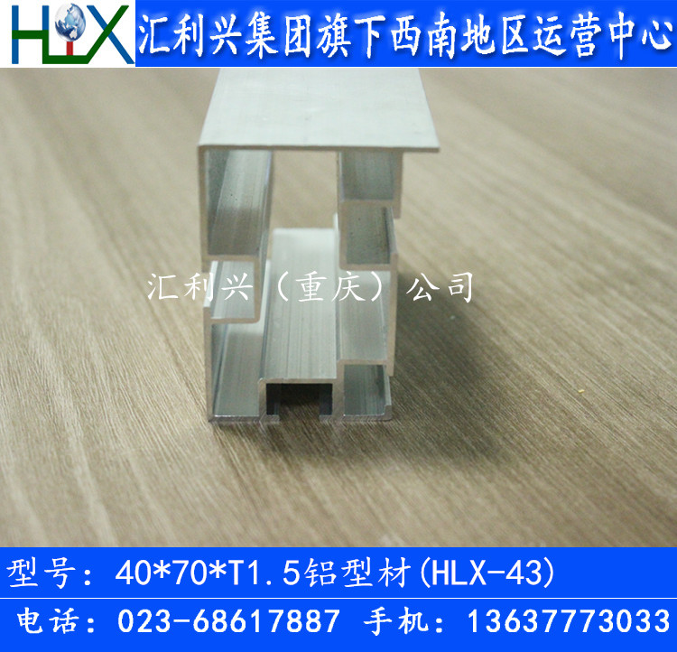 匯利興產(chǎn)品之皮帶線鋁型材系列,40*70*t1.5鋁型材(編號:HLX-43);又名帶護邊40*70鋁型材,每支6.02米長,壁厚1.5,米重1.428kg、槽寬8.3mm, 此款鋁型材常使用在簡易生產(chǎn)輸送線、無燈架流水線,配合在此款4070鋁型材常用配件有PVC輸送皮帶,機頭機尾動力滾筒、鍍鋅滾筒等一系列皮帶線常規(guī)材料。